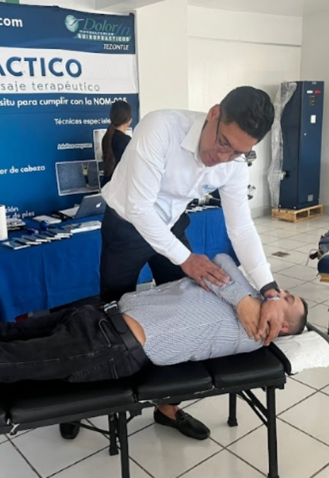 Después de un análisis de postura y espalda, realizamos un diagnóstico con un plan de tratamiento de 1 vez a la semana de quiropráctico y masaje activo. El colaborador regresa a sus actividades en 15 minutos, excepto en la primera sesión.